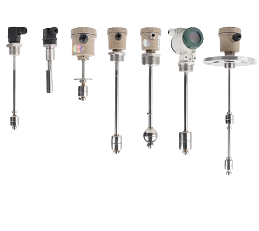 浮球液位计由浮球、插杆等组成。浮球液位计通过连接法兰安装于容器顶上,浮球根据排开液体体积相等等原理浮于液面,当容器的液位变化时浮球也随着上下移动,由于磁性作用,浮球液位计的干簧受磁性吸合,把液面位置变化成电信号,通过显示仪表用数字显示液体的实际位置,浮球液位计从而达到液面的远距离检测和控制。